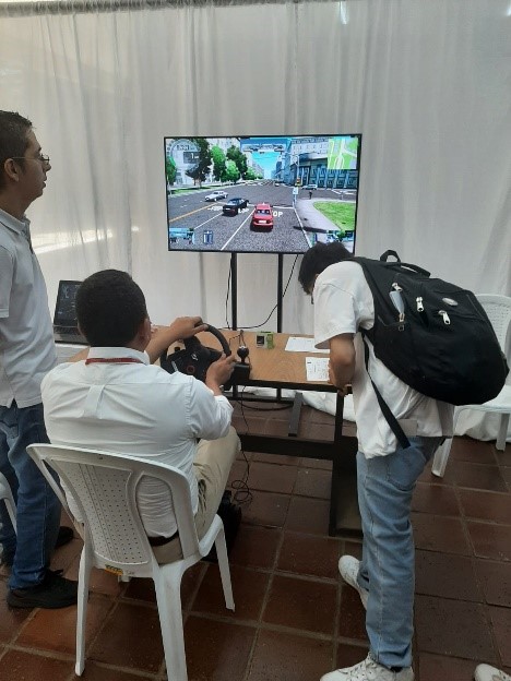 1. Participación del PESV en la conmemoración del día de la Salud, la Seguridad y el Trabajo: como parte de la Sección de Salud Ocupacional, el Plan Estratégico de Seguridad Vial, presentó un STAND informativo en el marco de la conmemoración del día de la Salud, la Seguridad y el Trabajo. El objetivo fue brindar información relevante sobre las actividades que realiza el PESV y compartir recomendaciones que promuevan las buenas prácticas en la vía de los conductores. Para hacer la experiencia más interactiva y efectiva, se emplearon dos simuladores de conducción, uno para automóviles y otro para motocicletas. Estos simuladores no sólo proporcionaron un elemento lúdico atractivo, sino que también dieron a conocer las normas de tráfico infringidas por los conductores y valiosas recomendaciones en tiempo real durante las maniobras realizadas por los participantes.